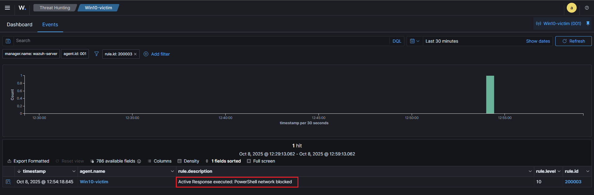 5) Wazuh alert confirming the action
